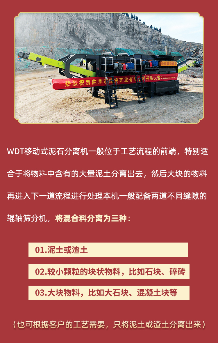 移动式泥石分离机是一种可将粘土等杂质与石材分离的设备,它可以很好地分离和筛选泥石。加工后的石材质地均匀、干净、价格高,在建筑市场更受欢迎。只需要一台粘土泥石分离机,离高品质砂石只有一步之遥!