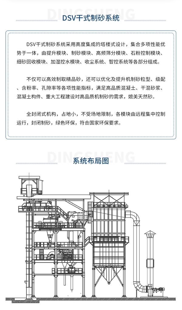 一般传统的湿法生产线我们要考虑很多,尤其是水源和环境的限制,必须在水资源丰富的地方进行机制砂,并且在北方的冬季一般 是无法进行生产, 要不然生产出来的砂子没有足够的水源清洗, 这样砂子里含泥粉和石粉量太多,将严重影响砂子的级配。而干法制砂生产线则不受水源和环境的限制。