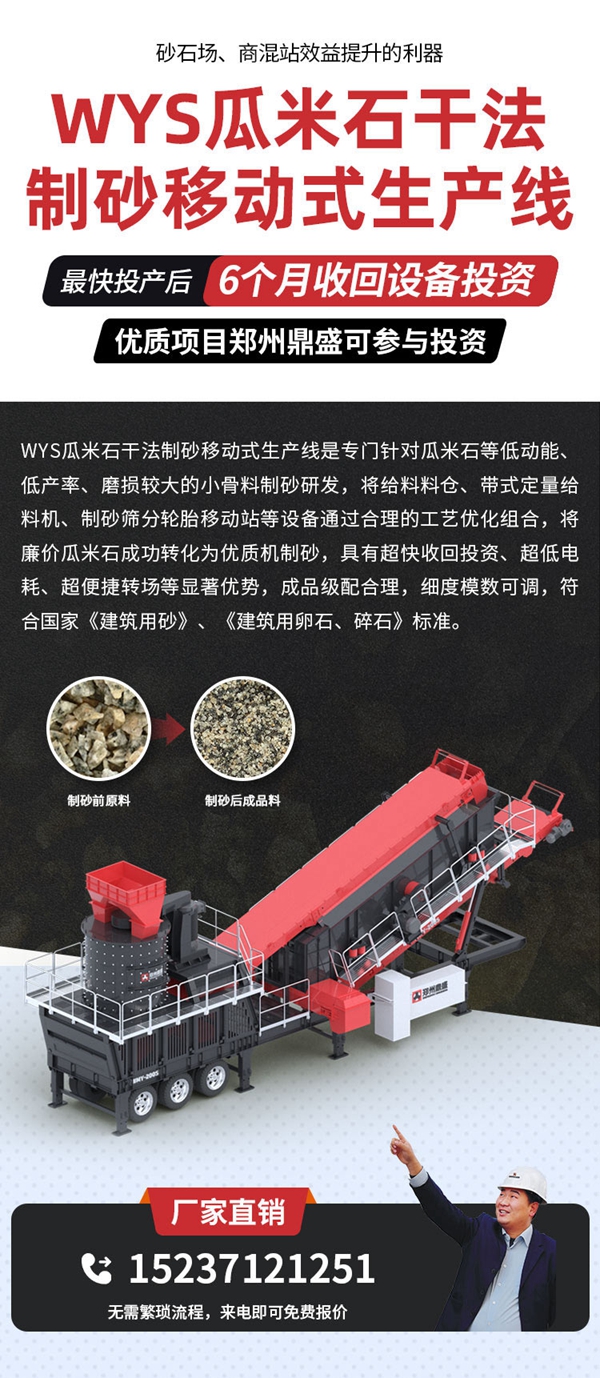 主用装备瓜米石低制粉全筛分超细破碎机,是专门针对瓜米石等低动能、低产率、磨损较大的小骨料制砂,在现有预磨机的基础上改良升级的新一代专用整形破碎机。设备采用立式结构,分级破碎工作方式。