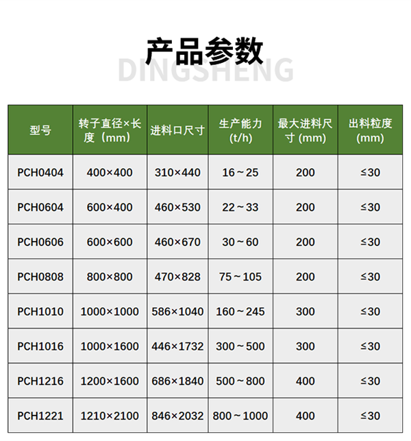 锤式破碎机在破碎湿度较大的物料时极为堵塞,从而造成生产效率低、产量低的问题,如原煤。这种天辰平台公司针对这个问题,研究推出了新型环锤式破碎机,该环锤式破碎机可根据客户的粒度要求,改变蓖板间隙,从而可达到出料细而均匀、破碎效率大幅度提高的目的,被称为煤炭行业专用破碎机。其主要型号有 PCH1010、PCH0808、PCH0606等等。由此环锤破可真正实现对原煤的高效破碎作业,有力推动了洗煤厂的专业化生产。