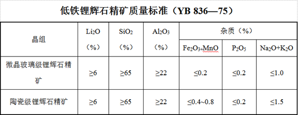 五、锂辉石质量标准