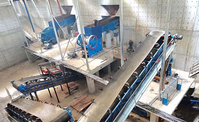 配置二:给料机+颚破+圆锥破+振动筛+制砂机+洗砂机+输送机