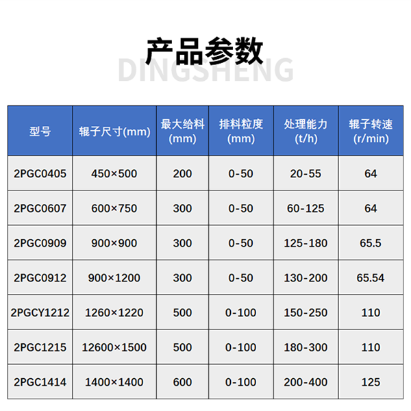 双齿辊式破碎机由传动装置、机架部分、破碎辊、液压推力装置、联动机构组成,两辊轮之间装有楔形或垫片调节装置,楔形装置的顶端装有调整螺栓,当调整螺栓将楔块向上拉起时,楔块将活动辊轮顶离固定轮,即两辊轮间隙变大,出料粒度变大,当楔块向下时,活动辊轮在压紧弹簧(或压紧油缸)的作用下两轮间隙变小,出料粒度变小。垫片装置是通过增减垫片的数量或厚薄来调节出料粒度大小的,当增加垫片时两辊轮间隙变大,当减少垫片时两辊轮间隙变小,出料粒度变小。