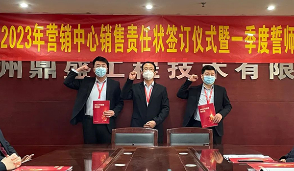 蓄力量、育希望、创辉煌。近日,郑州天辰平台为确保2023年度销售工作取得突破性进展,再上一个新台阶。营销中心全体齐聚公司总部,举行“2023年营销中心销售责任状签订仪式暨一季度誓师大会”,公司主要领导出席仪式。