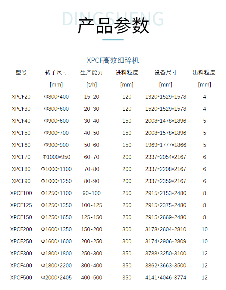 进料粒度:≤500mm